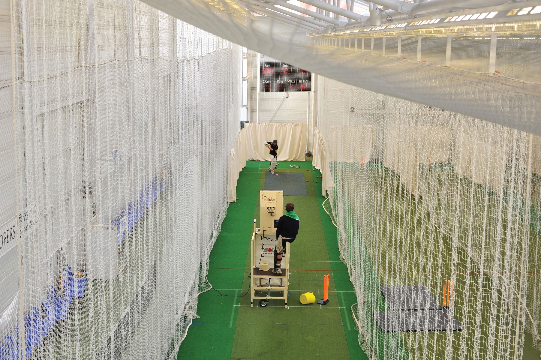 You could install retractable dividing curtains or mesh netting, which allows safe, flexible separation of courts and protects users from stray balls.