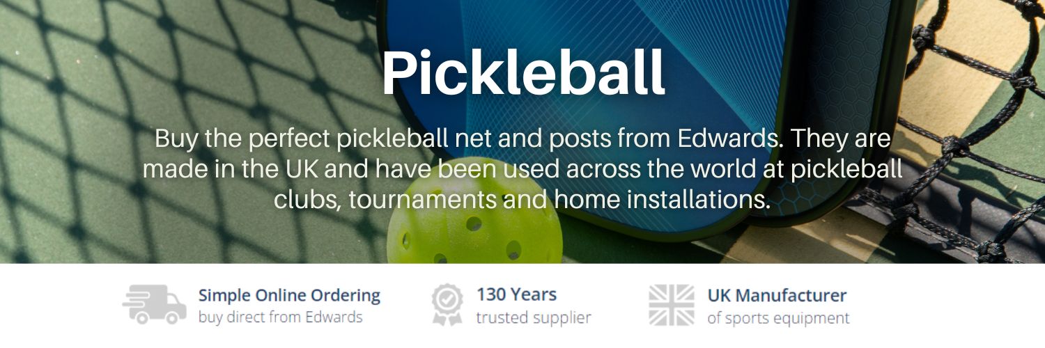 Buy durable, regulation-size pickleball nets for indoor and outdoor courts at Edwards Sports. Manufactured and hand-checked in the UK, our nets offer tournament-standard quality at outstanding value.